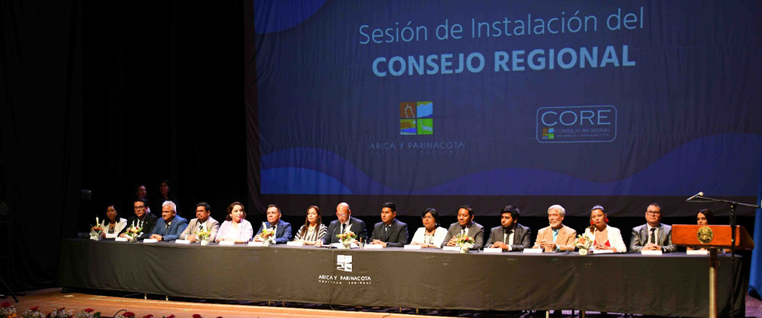 Con un Teatro Municipal desbordante se realizó la Sesión de Instalación del Consejo Regional que estará hasta el 2029 en el cargo. Durante la ceremonia juró el nuevo gobernador regional de Arica y Parinacota, Diego Paco Mamani y los 14 consejeros regionales. Romina Cifuentes González, Sofía Clavijo Medalla, Nino Estay Espinoza, Hermes Gómez Gallardo, Ignacio Gómez Gutiérrez, Marcelo González Olivares, Daniel Linares Zegarra, Lin-Kiu Ly Fumey, Denisse Morales Flores, Carlos Ojeda Murillo, Óscar Pantoja Rivera, Lorena Ventura Vásquez, María José Victoriano Cautivo y Cristian Villanueva Rosales integran el actual Consejo Regional de Arica y Parinacota.